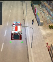 車子到了指定地點(diǎn)之后,我們把鼠標(biāo)左鍵選中消防車,接著右鍵一下就能讓車?yán)锏南绬T走出來了..