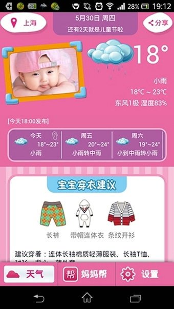 寶寶氣象臺(tái) - 手機(jī)必備育兒天氣軟件寶寶氣象臺(tái),由致力于母嬰社區(qū)十年的丫丫網(wǎng)旗下媽媽幫傾力打造,千萬(wàn)父母的愛(ài)心選擇!