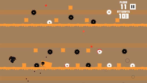 但是灰色障礙則會無差別的傷害主角,必須用動作躲避。是不是已經(jīng)聽暈了?這還沒完,這款游戲是不給玩家任何喘息機會的,主角一上來就是瘋狂奔跑,5秒之內(nèi),要么血濺當(dāng)場要么進(jìn)入下一樓層。