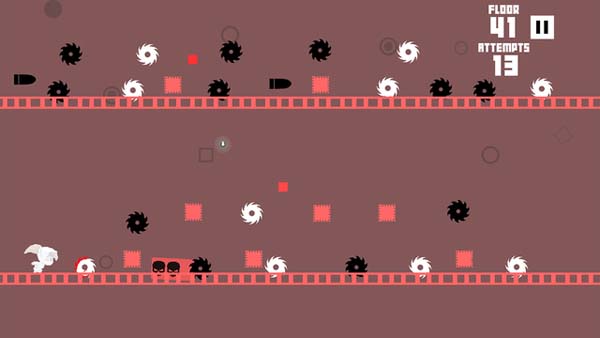 戲的玩法雖然簡單,但是玩起來可是非常困難的,游戲要求玩家在短短的1秒內(nèi)要做出2-3次反應(yīng),并執(zhí)行對應(yīng)的操作,這個難度是任何市面上的虐心游戲都不曾有過的。即便你以分解的角度去判斷每個樓層的難題,最終也還是需要一整套流暢無誤的操作才能過關(guān)。另外單純靠跳躍或切換顏色都不夠,必須兩者同時使用才能通過一些極難的障礙。