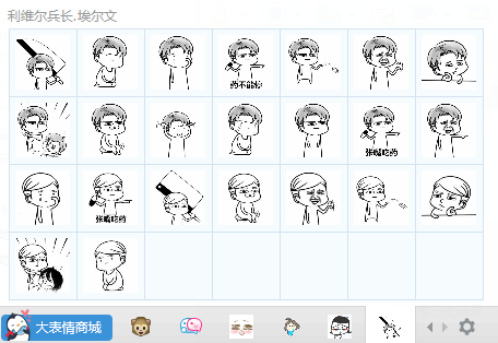 惡搞利威爾兵長qq表情包是一款非常好玩且搞笑的qq表情包,表情中因為有了金館長亂入,讓我們英俊瀟灑的利威爾瞬間變得猥瑣了,也更加搞笑,有喜歡的趕快拿下吧。