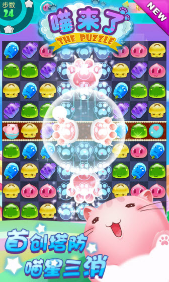 《喵來了》是一款以喵咪游歷美食王國(guó)為主題的休閑三消手游。本游戲講述了一只饞嘴貓咪迷途美食王國(guó)勇闖美食城堡的故事。在充滿誘人美食的世界中,玩家需要幫助喵咪消除糖果、巧克力、甜甜圈等美食障礙,依次挑戰(zhàn)120個(gè)獨(dú)特關(guān)卡。當(dāng)前版本的美食王國(guó)提供了8個(gè)美食城堡,每個(gè)城堡包含15個(gè)的小關(guān)卡和1個(gè)終結(jié)BOSS關(guān)卡。玩家需要依次破解15個(gè)小關(guān)卡,再擊敗關(guān)底BOSS才能破關(guān)并解鎖新的美食城堡。【游戲特色】