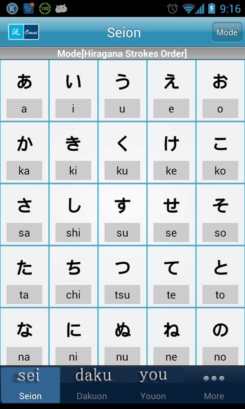 簡(jiǎn)單日語(yǔ)五十音以簡(jiǎn)潔的方式羅列了日語(yǔ)入門中必背的五十音圖,分成了清音(Seion),濁音(Dakuon),拗音(Youon)三大類,每一類又有相應(yīng)的平假名和片假名。并且支持五十音的書寫方式與發(fā)音方式。【更新日志】