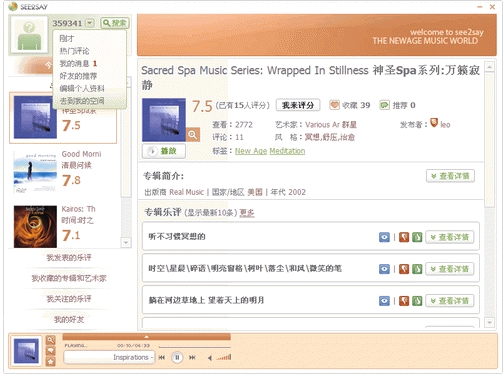 “see2say看道”新世紀(jì)音樂(lè)播放器是針對(duì)國(guó)內(nèi)新興起的音樂(lè)風(fēng)格類(lèi)型-Newage設(shè)計(jì),第一款為Newage音樂(lè)愛(ài)好者提供的針對(duì)性播放器