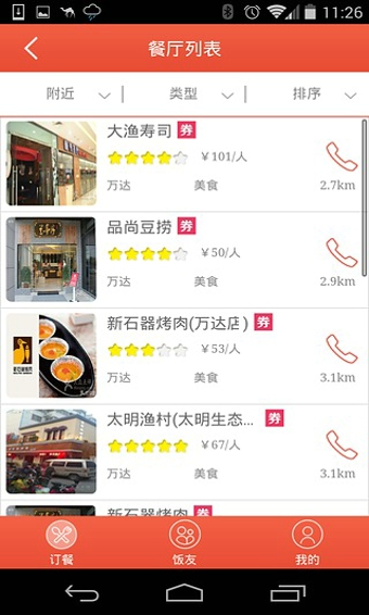1、擁有海量的淮安美食信息、最新的美食優(yōu)惠資訊。2、提供最及時(shí)的訂餐反饋,以及免費(fèi)短信邀請(qǐng)飯友最貼心功能!