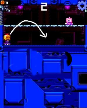 3、下圖所示地方也是新手玩家們經(jīng)常死掉的一個地方,下方的機器人會在下面不停的左右來回移動,而且機器人還會向上跳躍,小人如果碰到了的話就會直接死掉,這里要注意的就是對于機器人跳躍軌跡的預判,因為它是朝著前上方跳躍,因此如果向后面躲避的話很可能被撞到。
