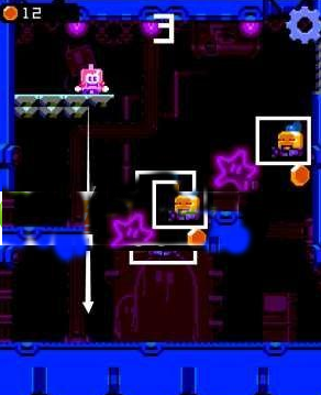 5、下圖這里是考驗玩家們反應的地方,空中的機器人會來回的飛動,玩家們不能碰到它們,上面的地板會隨著玩家們的移動而消失,我們需要在在適當?shù)臅r候改變方向從而在落下的時候避開空中的障礙物。
