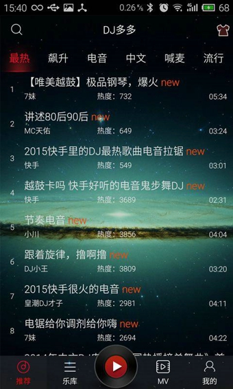 中文舞曲、英文舞曲、日韓舞曲、車載、夜店、蘇荷、喊麥、電音、節(jié)奏、Remix、網(wǎng)絡(luò)DJ、網(wǎng)絡(luò)紅歌,只有你想不到,沒有找不到。