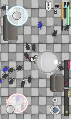 1、一款消除蟑螂的游戲,玩家主要控制機(jī)器人進(jìn)行操作!2、在游戲中屏幕左下角的圓圈代表控制移動(dòng),而右下角的圓圈則是發(fā)射!