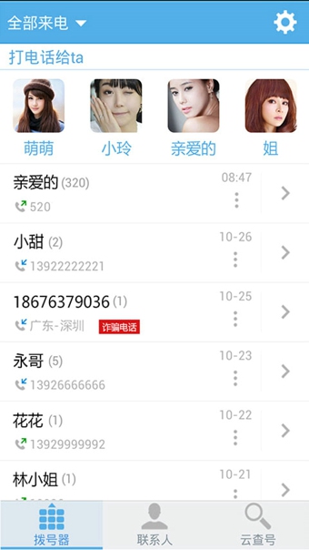 【最人性的撥號器】首創(chuàng)打電話給ta,智能識別可能想找的聯(lián)系人,讓你每一天都不會錯過給重要的他(她)打電話;精準(zhǔn)的陌生來電識別,詐騙電話、騷擾電話、推銷電話、惡意廣告立即顯現(xiàn)。