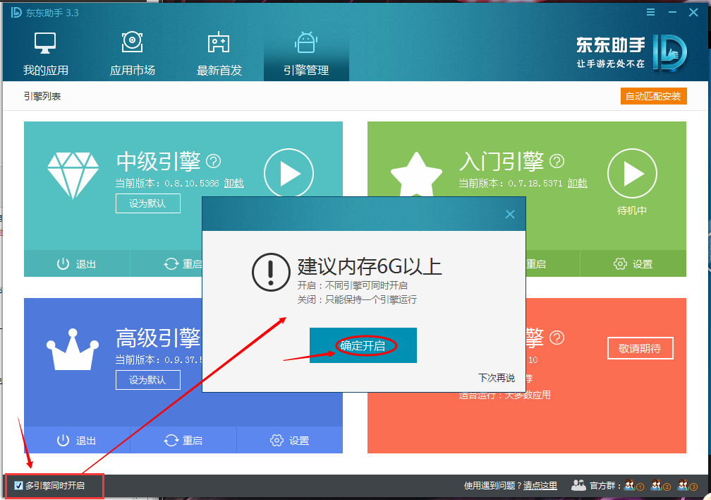 第一步:打開東東助手,勾選左下角的多引擎同時(shí)開啟的勾選。