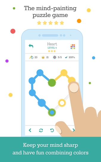 游戲隨著關卡的深入,難度也不斷加劇,有時候一個畫面中需要調(diào)和的顏色會越來越多,路線也會越發(fā)復雜,極具挑戰(zhàn)的玩法,你們真的HOLD住嗎?在叫天天不應叫地地不靈的時候,工具欄中各種貼心的按鈕,在你迷茫的時候,點擊問號提示,清晰的路線圖足夠令你豁然開朗,在你后悔走錯路時,有愛的撤銷按鈕,讓你可以重頭開始。