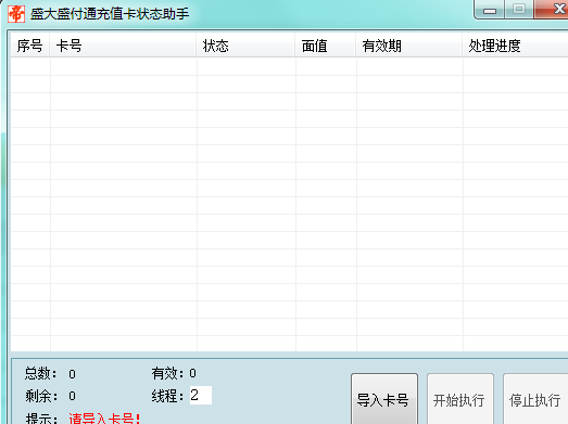 盛大盛付通充值卡狀態(tài)助手是用來查詢盛付通充值卡的充值狀態(tài)的工具,可以批量導(dǎo)入卡號(hào)一下完成查詢,非??焖俜奖?。【軟件特點(diǎn)】