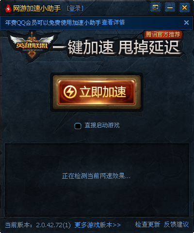 1. 僅支持LOL游戲的加速。