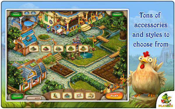 【4】創(chuàng) 意:本作是“Playrix Entertainment”繼《園藝別墅》后帶來的全新同類作品。游戲在形式上有所變化,以互動(dòng)的機(jī)關(guān)謎題為主線,結(jié)合了經(jīng)典的交換消除游戲規(guī)則。賺取足夠的金幣后,你還可以購買多樣化的園藝裝飾來美化你的農(nóng)場(chǎng),使游戲更具趣味性!