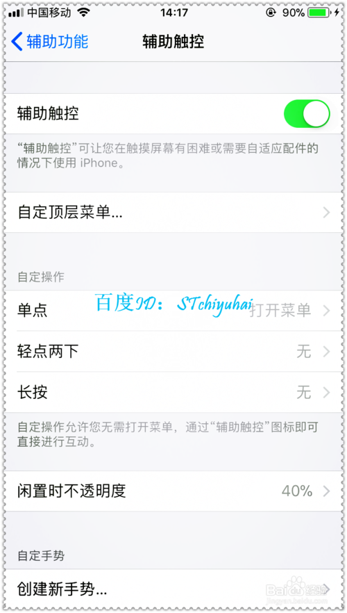 點(diǎn)擊進(jìn)入AssistiveTouch(輔助控制),可以在第一欄左右滑動(dòng),開啟關(guān)閉這個(gè)功能;