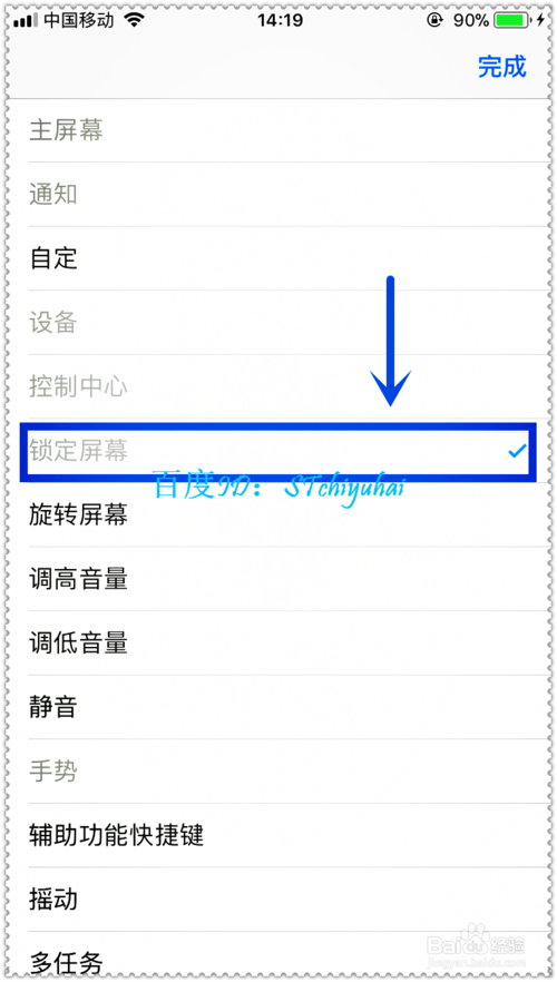 選擇你要替換的一些功能按鍵,點(diǎn)擊進(jìn)入替換界面,替換界面中會(huì)列出現(xiàn)有功能鍵列表,根據(jù)自己的需要選擇,比如這里將自定換成鎖定屏幕,這樣就不用去按側(cè)邊的鎖定鍵,直接用AssistiveTouch(輔助控制)操作鎖定屏幕。