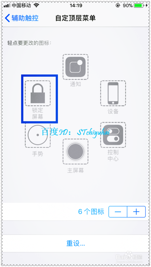 選擇好這個(gè)功能選擇完成,這個(gè)快捷替換就會(huì)顯示在AssistiveTouch(輔助控制)頂層操作界面上,后續(xù)就可以方便操作了,對(duì)于初始的6個(gè)按鍵如果覺得太多可以減少,太少可以增加,點(diǎn)擊底下+-便可。