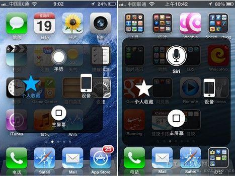 這個(gè)功能打開后,在iPhone/iPodtouch的界面上會(huì)浮現(xiàn)出一個(gè)小方塊,點(diǎn)擊它會(huì)彈出四個(gè)功能菜單。這個(gè)小方塊可以隨著不同程序的開啟和關(guān)閉在屏幕四周的八個(gè)位置自由移動(dòng),避免“礙事”的情況,也可以手動(dòng)調(diào)節(jié)。
