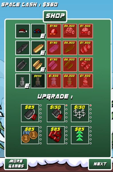 搞笑的圣誕老人造型,動(dòng)感的游戲音效;豐富的游戲道具,幫助你飛的更高;