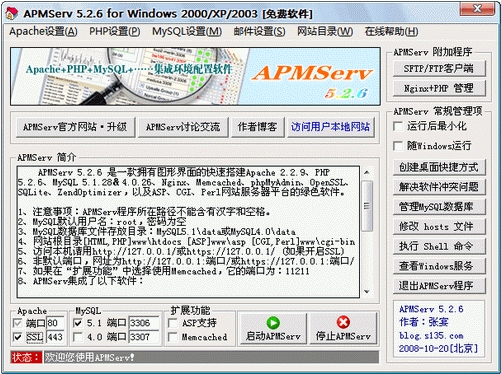 APMServ下載 V5.2.6 中文免費(fèi)版 APMServ下載 V5.2.6 中文免費(fèi)版