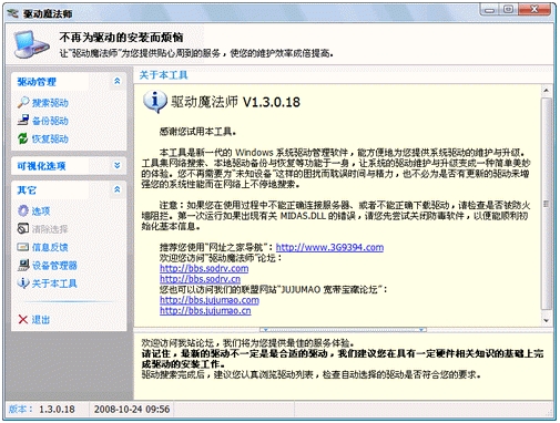 本工具是新一代的Windows系統(tǒng)驅(qū)動(dòng)管理軟件,能方便地為您提供系統(tǒng)驅(qū)動(dòng)的維護(hù)與升級(jí)。工具集網(wǎng)絡(luò)搜索、本地驅(qū)動(dòng)備份與恢復(fù)等功能于一身,讓系統(tǒng)的驅(qū)動(dòng)維護(hù)與升級(jí)變成一種簡(jiǎn)單美妙的體驗(yàn)。您不再需要為“未知設(shè)備”這樣的困擾而耽誤時(shí)間與精力,也不必是否有更新驅(qū)動(dòng)來(lái)增強(qiáng)你的系統(tǒng)性能而在網(wǎng)絡(luò)上不停地搜索。