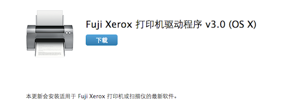 Xerox富士施樂打印機驅(qū)動程序3.0版For Mac(2014年4月11日發(fā)布)Apple通過“軟件更新”提供適用于掃描儀和打印機的第三方軟件。將你的打印機或者掃描儀連接到Mac上,系統(tǒng)就會自動下載安裝驅(qū)動程序。