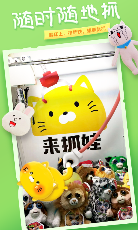 【更多爆款娃】- 更新、更萌、更賤的網(wǎng)紅娃,從呆萌到兇殘,統(tǒng)統(tǒng)帶走!【隨時(shí)隨地抓】- 趟床上、擠地鐵、蹲廁所,隨時(shí)隨地,了解更多抓娃新姿勢(shì)!