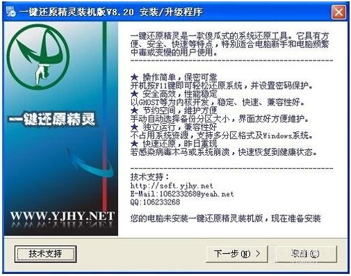 一鍵還原精靈裝機(jī)版將在硬盤上劃分出一個(gè)隱藏的分區(qū),用來存放備份備份文件,這個(gè)備份文件將相當(dāng)安全,不懼怕任何病毒的破壞。適合電腦城的裝機(jī)人員及對(duì)電腦比較了解的人安裝使用或安裝好后給新手使用。