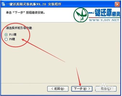 4、在電腦重啟后,在出現(xiàn)這一行的英文時(shí),按下F11鍵進(jìn)入到一鍵還原精靈的DOS界面。