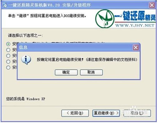 7、因?yàn)橐郧皞浞葸^系統(tǒng),所以會(huì)彈出這個(gè)窗口,點(diǎn)擊“確定”繼續(xù)。