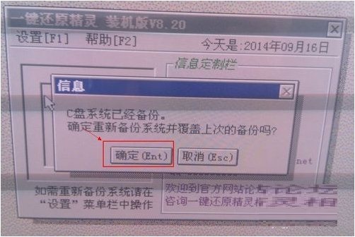2、在打開的窗口中,點(diǎn)擊“進(jìn)入一鍵還原”,進(jìn)行系統(tǒng)的備份。