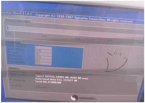 8、出現(xiàn)下面的界面后,就開始重新備份系統(tǒng)了,備份完系統(tǒng)后,電腦就會(huì)重新啟動(dòng)了。下一次電腦出現(xiàn)系統(tǒng)方面的故障后,進(jìn)行一鍵還原就可以了。