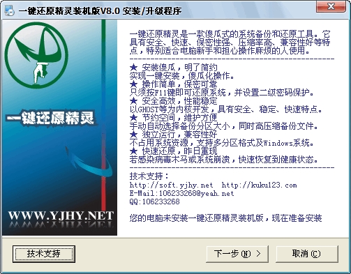 一鍵還原精靈是一款傻瓜式的系統(tǒng)備份和還原工具。它具有安全、快速、保密性強(qiáng)、壓縮率高、兼容性好等特點(diǎn),特別適合電腦新手和擔(dān)心操作麻煩的人使用。支持WIN98/ME/2000/XP/2003/VISTA系統(tǒng)。