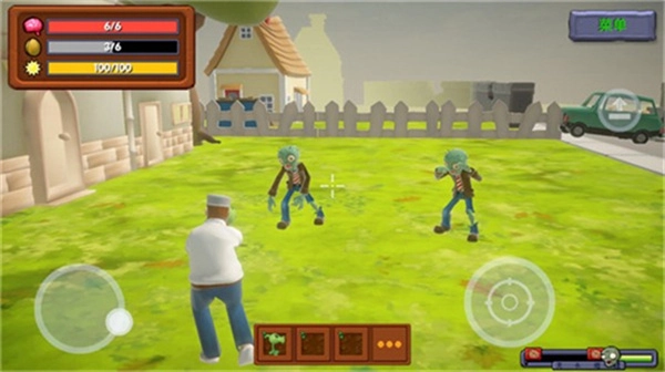 《雜交戴夫》是一款以經(jīng)典塔防游戲《植物大戰(zhàn)僵尸》為藍(lán)本改編的3D射擊游戲,在游戲里戴夫不再只是幕后指揮,而是拿起武器親自上陣對抗僵尸。游戲操作十分便捷,玩家通過虛擬搖桿操控戴夫移動,滑動屏幕進(jìn)行瞄準(zhǔn),點(diǎn)擊開火按鈕就能射擊。同時,這款游戲也保留了植物相關(guān)的玩法,玩家可以操控戴夫收集陽光,進(jìn)而召喚植物并肩作戰(zhàn)。另外值得注意的是,攻擊僵尸頭部能造成雙倍傷害。
